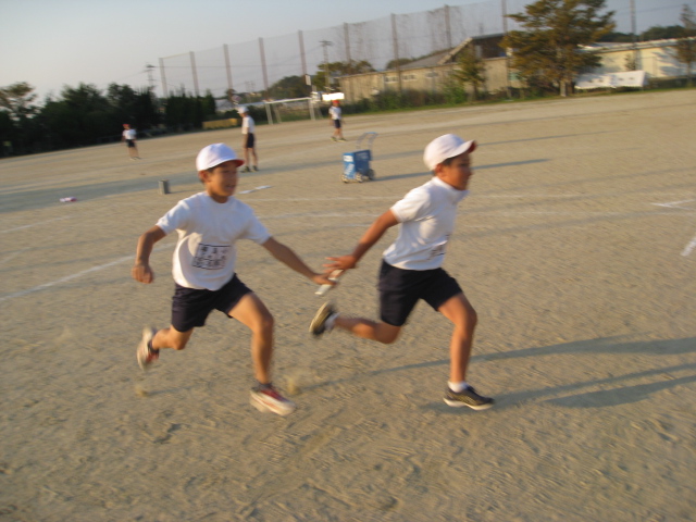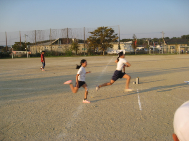 10月16日(金)来週21日(水)の玉名市の陸上記録会に向けて、週3回放課後種目練習をがんばっています。種目練習後、リレーメンバーは更に練習をがんばっています。