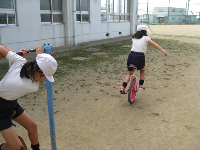 10月15日(木)昼休みに一輪車の練習をしている子どもがいます。一輪車は、バランス感覚を養うのにとってもいいそうです。