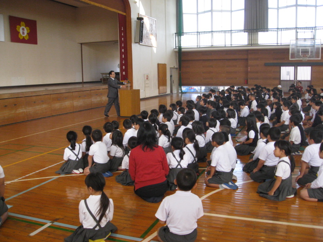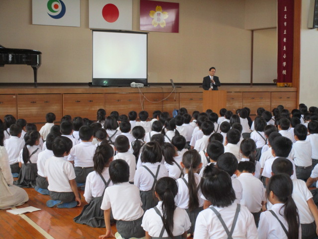10月9日(金)前期終業式がありました。内容は、校長先生の話(ノーベル賞の大村さん、梶田さんについて)、表彰(漢字大会、計算大会満点賞)、児童代表発表(前期にがんばったこと)、校歌斉唱でした。1年生の発表がとっても上手でした。