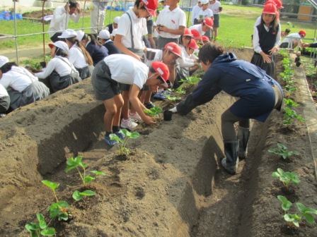 3年生が、イチゴの定植をしました。大西さん、吉岡さんはじめたくさんの保護者にお手伝いをしていただけました。感謝申し上げます。