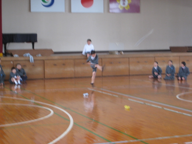 11月28日(土)土曜ですが、3時間授業でした。4年生が、チャレラン(チャレンジランキング)を体育館でしていました。日本チャレンジランキング連盟というのがあり、全国各地で大会があり、文科省が後援しています。以前はズームイン朝で、年2回大会が放送されていました。たくさんの種目があります(それぞれに公式記録があります)が、その中から「ボール(おてだま)かごいれ」「くつとばし」「ぞうきんがけ」の3つをしていました。みんなが競争を楽しんでいました。