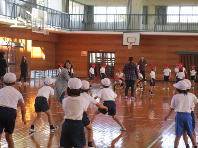 11月5日(木)2年生が親子給食とレクレーションをしました。例年1年生で行いますが、昨年度は、水道のことでしばらく給食ができないことがあって、親子給食もできませんでしたので、2年生になってからの今年実施しました。親子仲よく給食を食べたあと、体育館でレクレーションを楽しみました。