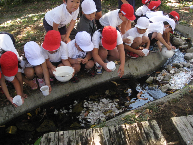 11月4日(水)町づくり委員会の方々がいらっしゃって、学びの森の水路にホタルの幼虫を放流しました。無事に育って5月頃成虫となってたくさん飛んでほしいです。ただ、生き残るのは1%以下です。