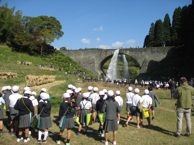 10月29日(木)4年生が、通潤橋に見学旅行に行きました。160年も前に白糸台地に田を作るために水を通す橋を苦労をして作った人たちの努力などを学習しました。団体行動でも少し成長しました。