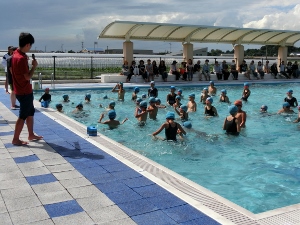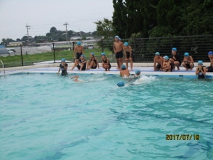 7/25(水) 夏休みに入って3日目になりました。今日から3日間は、学習教室と水泳教室を行っています。水泳記録会に向けて選手になっている人も一緒に練習をしました。