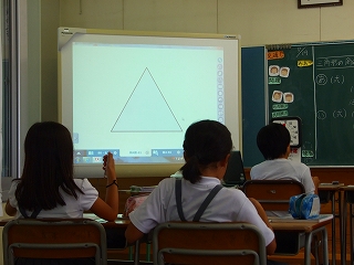 7/19(火) 5年1組の算数の授業「三角形の内角の和」の学習のようすです。