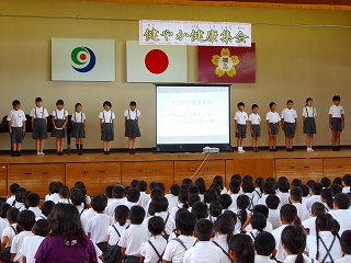 7/1(金) 健やか健康集会を実施しました。保健委員会から「元気度チェック」の報告