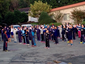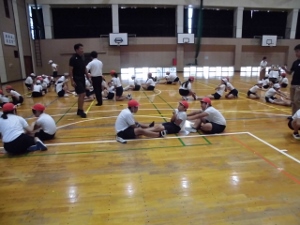 5/23(水) 予定していた総練習は雨のため中止になりました。体育館で開・閉会式の練習を行ないました。ラジオ体操も上手になってきました。