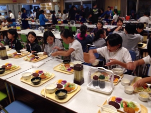 1/30(水) 給食の先生方と一緒に給食を食べる「ありがとう給食」がありました。先生方と会話を楽しみながら、おいしくいただきました。