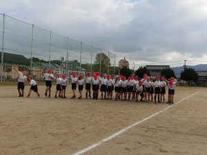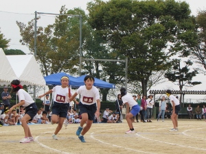 10/4(火) 10月になりましたが、まだまだ暑い日が続いています。暑い中、青空タイムでは、外で体力づくりにがんばっていました。写真は6年生のリレー、2年生のドッジボールの様子です。