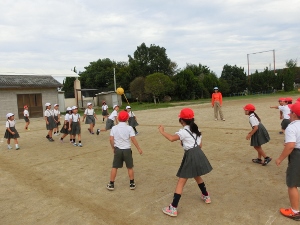 9/9(金) 1年生の学年PTAがありました。給食試食会のあと、親子でドッジボールを楽しみました。