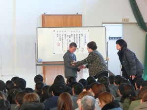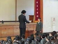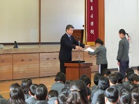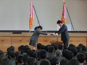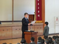 12/22(木) 冬休み前の全校集会がありました。校長先生より自分と友だちの命を大切にしてほしいというお話がありました。(校長先生のお話) また、作文や部活動などの表彰がありました。