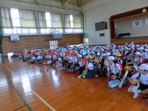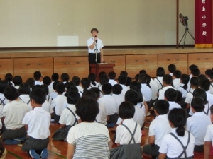 7/22(金) 夏休み前の全校集会がありました。校長先生より、命を大切にしてほしいというお話がありました。また、担当の先生から夏休みのきまりについてや、夏休みのくらしについてのお話がありました。明日から夏休みです。楽しい夏休みにするためにも、きまりをしっかり守ってください。