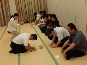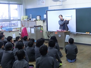 2/5(火) 4年生が玉名学で茶道の体験をしました。学校には広い和室がないので、公民館をお借りして行いました。講師の先生に、「初めてにしては上手でした」とほめられました。中学3年生まで毎年茶道体験があるので、礼儀作法など身につけて上手になっていってほしいと思います。