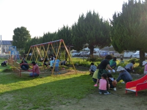 夕飯の後は、雨のため、ナイトハイクからペタンクになりました。とても盛り上がりました。