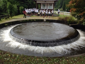 9/23(金) 4年生が上益城郡山都町へ見学遠足に出かけました。 写真は、円形分水で学習している模様です。