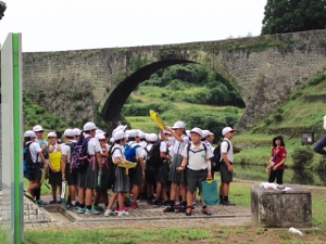 9/21(金) 4年生が社会科見学旅行で通潤橋に行きました。資料館では石山さんのお話を聞くことができました。