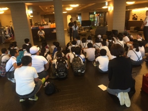 ホテルに到着しました。入館式の様子です。