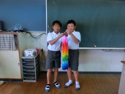 9/7(水) 業間に縦割り班活動がありました。班ごとに、じゃんけんめいろをしました。とても楽しそうでした。