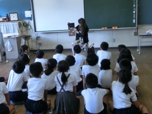 週に2回、外国語専科の先生に中学年の外国語活動と高学年の外国語を教えていただいています。外国語を楽しみ、好きになってほしいと思っています。