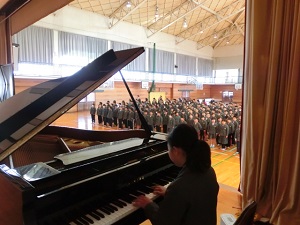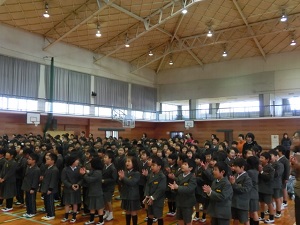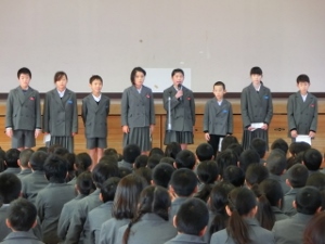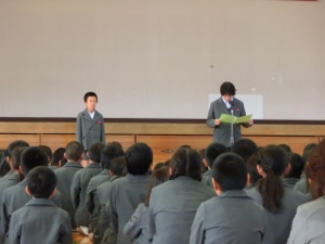 1/7(月) 今日から後期後半が始まりました。月初め集会が行われ、校長先生のお話や環境委員会からの発表がありました。