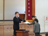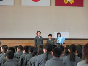 2/1(金) 今年度最後の月初め集会がありました。書初めコンクールや文集「ゆめ」の表彰、生活委員会からの発表がありました。音読発表は1,3,5年生でした。5年生はジェスチャーを交えながら上手に発表することができました。