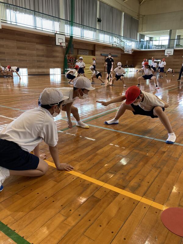 腰を低く保ったままの踊りにも、6年生の丁寧な指導のおかげで、5年生は楽しんで練習に取り組むことができました。早速本日は筋肉痛です。