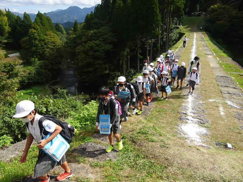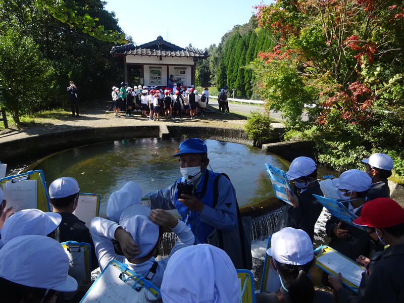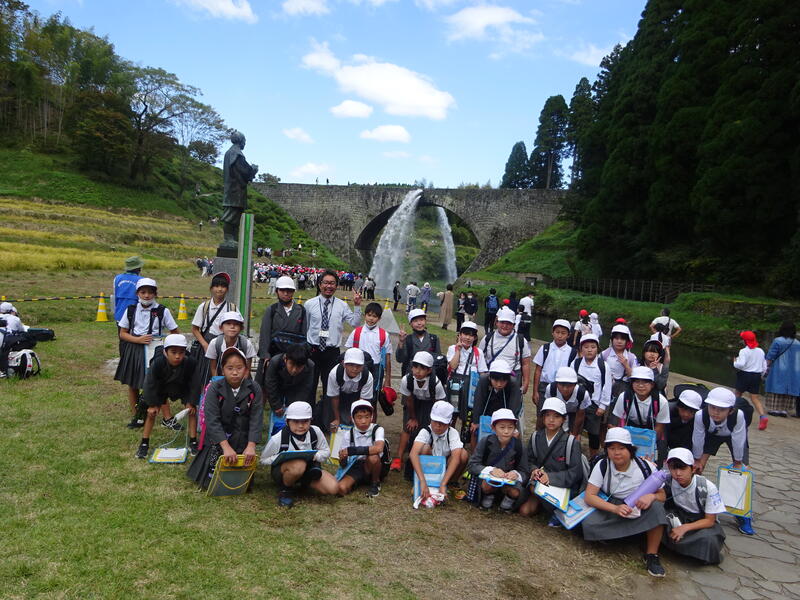 10月21日(金)に見学旅行にいきました。見学旅行では、円形分水や通潤橋の見学を通して、台地に水を引くための人々の苦労や工夫を知ることができました。通潤橋の放水もちょうど見ることができ貴重な体験をすることができました。