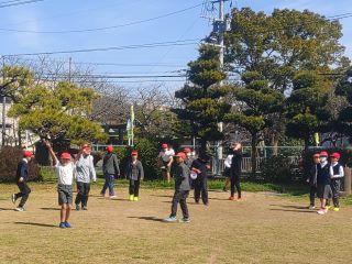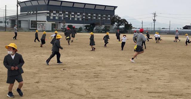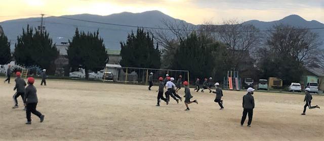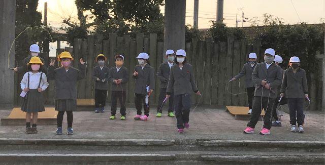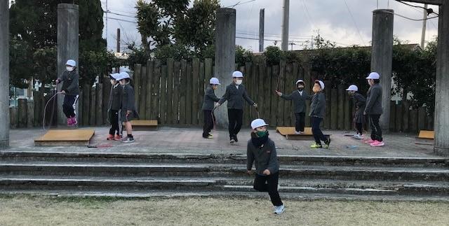2月4日(木)朝のグリーンステージです。縄跳び大会が終わったのにまだ練習を続けている子供達がいます。もう一枚は、鬼ごっこをしていた2年生がポーズをとってくれました。