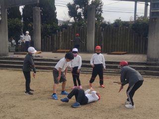 3月3日(水)6年生が、感謝プロジェクトの一環で、自分たちが計画した種目で下級生と一緒に遊ぶ計画を立てています。今日は、6年2組が4年生と活動しました。6年生4年生の絆づくりと思い出づくりの目的もあります。6年生は、自分たちで計画を考え運営も行ったので、達成感も高まっていたようです。
