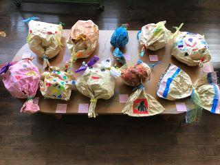 2月10日(水) 校舎を見回っていると、1年生の廊下にとってもカラフルな工作ができあがっていました。いろんなお弁当ができあがっていました。保護者の皆様は、是非授業参観の時にご覧になってください。