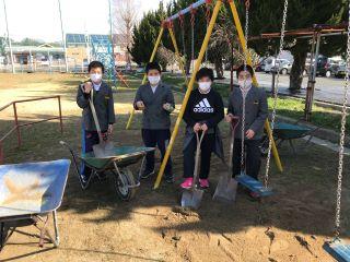 2月10日(水) 6年生が総合的な学習の時間で感謝プロジェクトに取り組んでいます。その一つに学校への感謝を表すグループがあります。自分たちで考えた取組もあるのですが、私から一つお願いをしました。それは、ブランコの下に砂を入れることです。なぜかという雨上がりに水がたまり、子供達が遊べなかったり泥まみれになってしまうからです。今日、活動に取り組んでくれました。みんなありがとう。