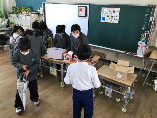 3月11日(木)今日の昼休みに5年生が、地域の方へ配付するプレゼントを準備していました。教頭先生の指導のもと気持ちを込めて活動していました。そして、下校の途中自宅まで届けました。何軒かのお宅からは、お礼の電話がありました。中身は花と家庭科で作ったトマトとイチゴのマスコット、アマビエの疫病退散のお守りとお手紙です。一緒にひまわりプロジェクトのヒマワリの種も配付しました。※写真撮影時だけマスクを外して撮影