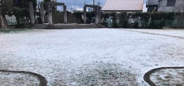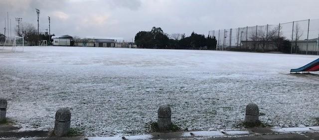 2月18日(木)子供達が登校してくる前の運動場です。うっすらと雪が積もっていました。他の地域では、もっと積もっているところもあったようです。