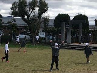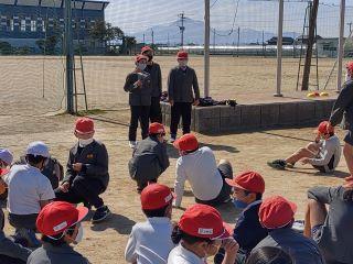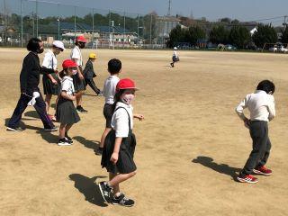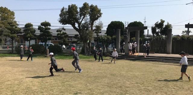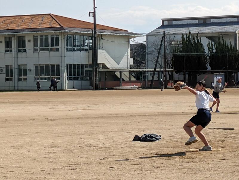 大谷翔平選手から寄贈していただいたグローブを使って、昼休みに子どもたちが、野球して楽しんでいます。