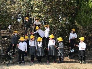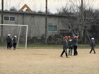 3月4日(木)朝の運動場です。子供達は、元気に走り回っていました。学びの森では、1年生が話し合いをしているところでした。