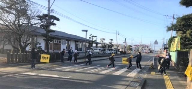 3月1日(月)今日も保護者・地域の皆様のご協力で子供達の安全な登校ができました。各地域でもご指導いただいていることに感謝いたします。写真は、学校前の横断歩道です。