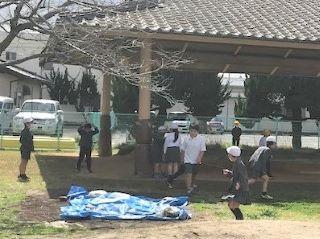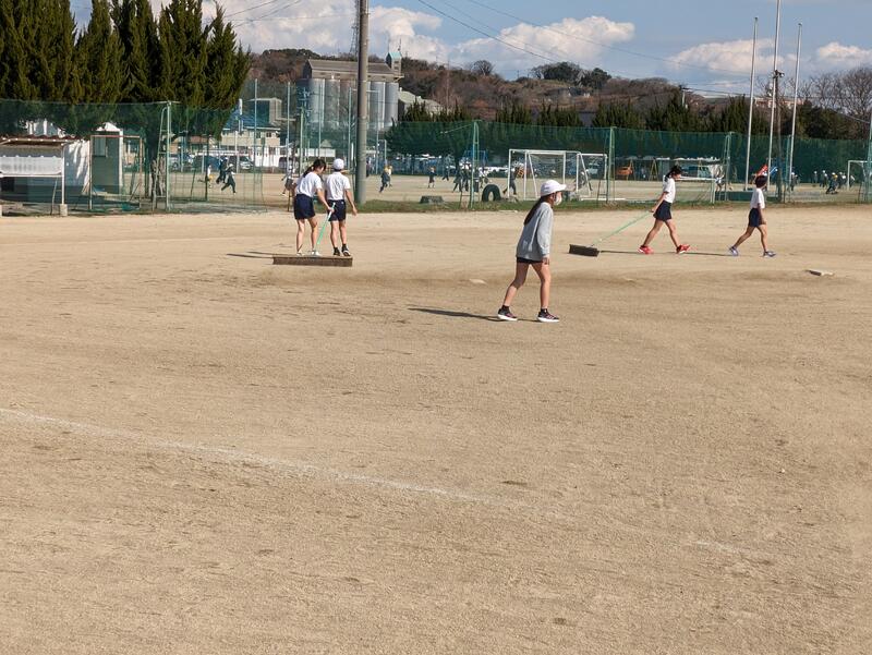 昼休み、野球を楽しんだ後は、グラウンド整理をみんなでします。