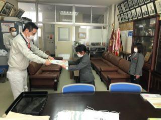 2月3日(水) JAたまなの女性部より味噌の贈呈がありました。部長の孝富士様、事務局の木村様がおいでになり、横島小学校の子供達のために地元食材で作った味噌を5Kgいただきました。大変ありがとうございました。給食で使わせていただきます。