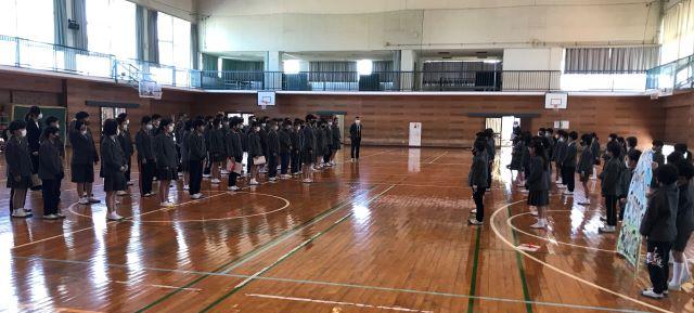 3月23日(火)修了式では、修了証渡しの後、私から本年度の子供達の頑張りを伝え次年度への課題を一つ伝えました。次に生徒指導担当から春休みの生活について「共感力、考動力、やり抜く力」を生かして新型コロナを防ぎメディアと良い付き合い方をしようと伝えました。最後に養護教諭から春休みも生活のリズムを守ろうと伝えて終えました。その他に表彰を行いました。