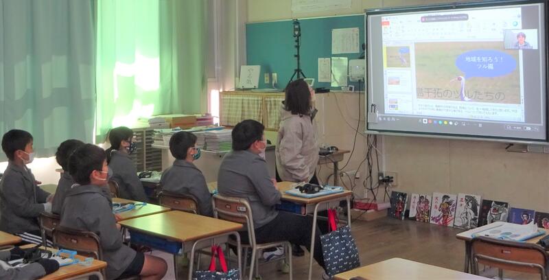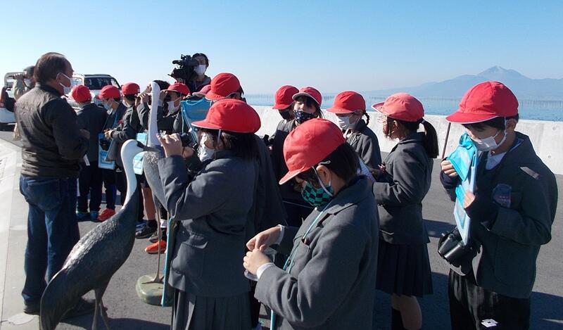 野鳥の会にお世話になっている3年生の総合的な学習の時間での「野鳥学習」では、1月19日(水)に干拓でのマナズルの観察と東京の講師とのオンライン学習を実施しました。今回は、コロナ感染防止に配慮し、2班に分かれてバス移動したり、双眼鏡を一人一つずつ貸していただいたりしました。児童も教師もとても満足していました。