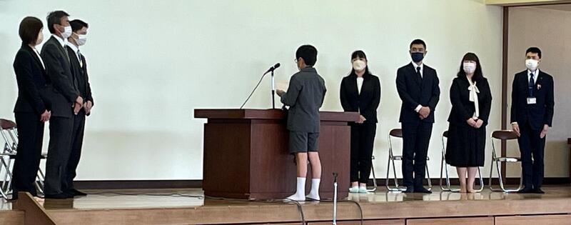 代表して賞状を受け取る6年生 山下 武虎 さん