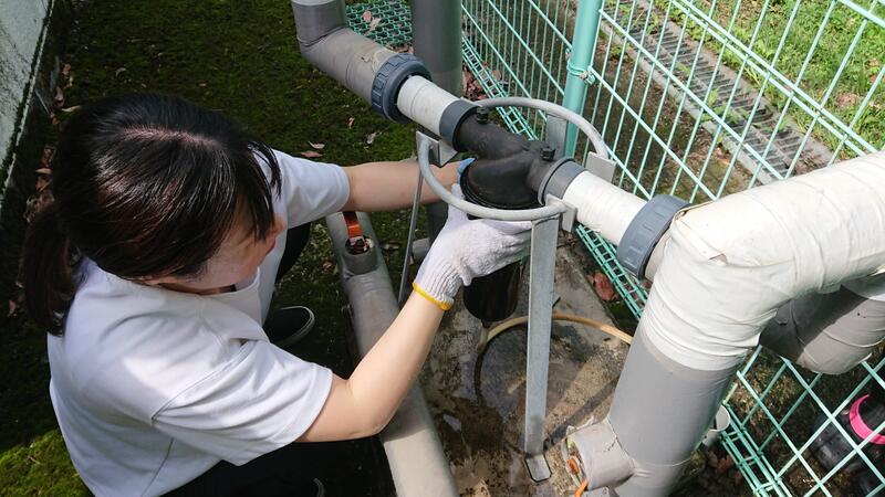 強い雨が降った翌日などに、校内の水道水が、赤みがかった色になることが、今日を入れて4月から3回ありました。前回も写真のように濾過フィルターを手作業で洗浄して回復させることができました。玉名市教育委員会へ前回も連絡して対応していただいていますが、給食を作るために早朝から忙しい給食の先生たちと今日も緊急に水道水濾過フィルターを洗浄しました。洗浄後は、通常の透明な水道水に戻りました。玉名市役所の説明では、横島小学校の地盤との関係で今回のようになるとのことでした。特に雨が多く降るとなりやすいようです。濁っていても飲料水としては問題ないとのことですが、その状態で子どもたちに水を飲ませたり、給食の調理をしたりすることはできないので、今日も先生方と緊急対応しました。給食の先生たちの見えない努力を知っていただきたく投稿しました。
