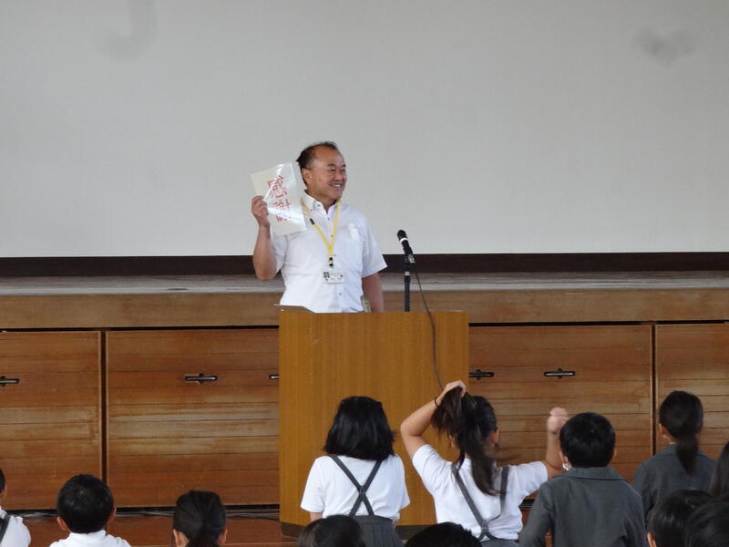 上の写真は、校長の話の際に手にもって子どもたちに見せたものです。