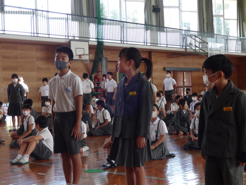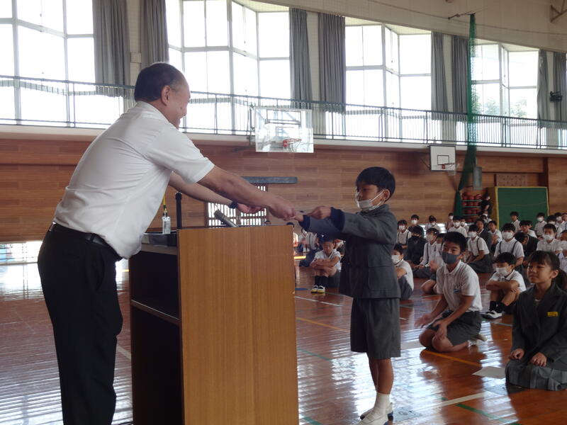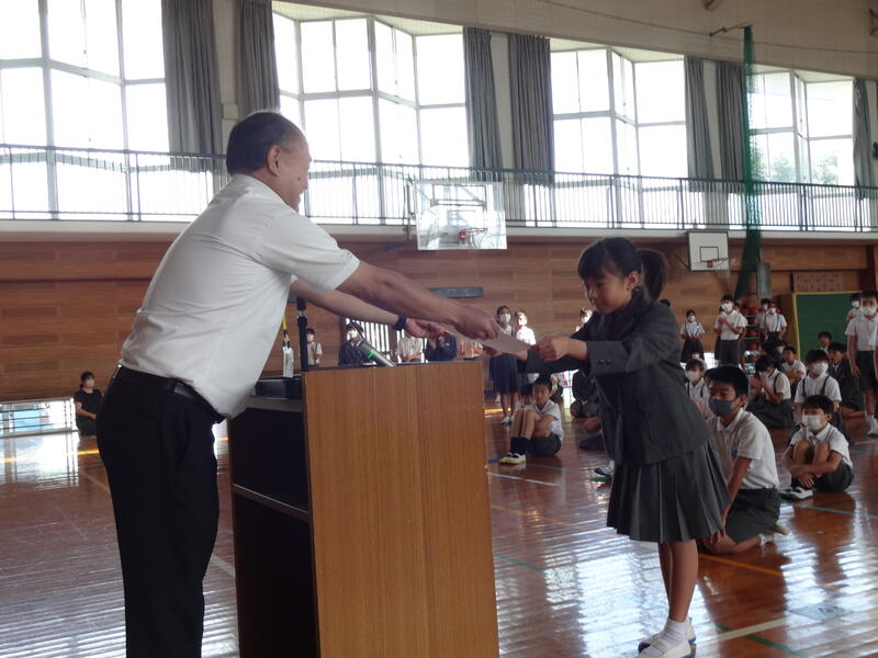 10月6日(金)の2校時に体育館に全校児童が集合して前期の終業式を行うことができました。