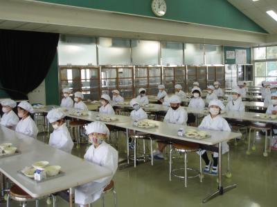 4月13日(火)1年生にとっては初めての給食。ランチルームでの給食にやや緊張気味でした。