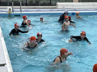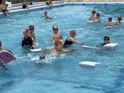 15日(火)に5年生のプール開きを行いました。雨がぱらつく中でしたが、水温は高く、楽しく水泳の学習のスタートを切ることができました。