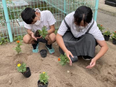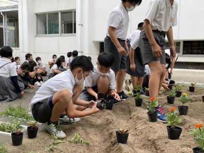 15日(火)人権の花を花壇に植えました。これから心を込めて育てていきたいと思います。