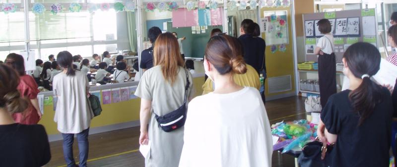 7月6日(火)5校時に、1年生が卒園した保育園や幼稚園の先生方に授業を参観していただきました。1年生は、とてもはりきって、授業中の姿勢もばっちりでした。授業が終わっても、なごりおしそうでした。