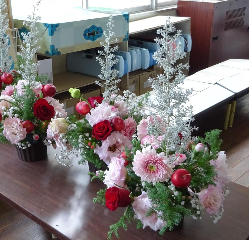 12月1日(水)、熊本県花き事業協同組合にお世話になり、2年生がフラワーアレンジメントに挑戦しました。とてもきれいにできました。